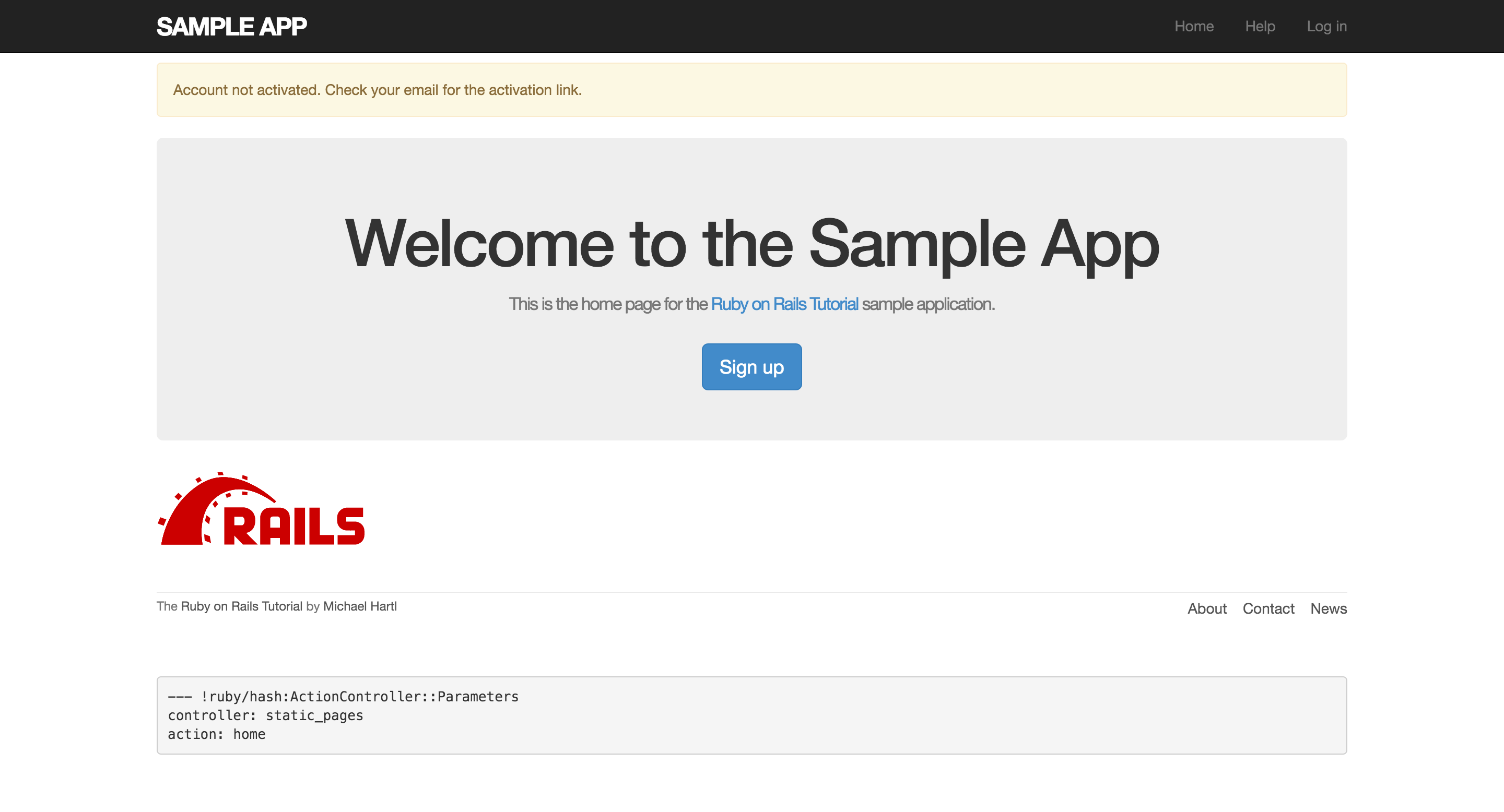 不過目前啟動使用者之後沒什麼實際的效果,因為我們還沒改變登入的方式。為了讓啟動有實質意義,要只允許已啟動的使用者才能登入,方式就是如果 user.activated? 值為 true,就允許使用者登入,反之導回首頁,並且出現警告訊息: