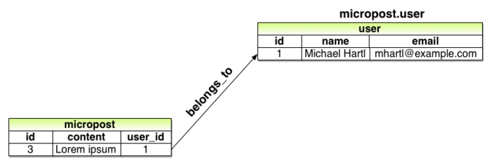 microposts 和所屬使用者之間的 belongs_to (屬於)關係