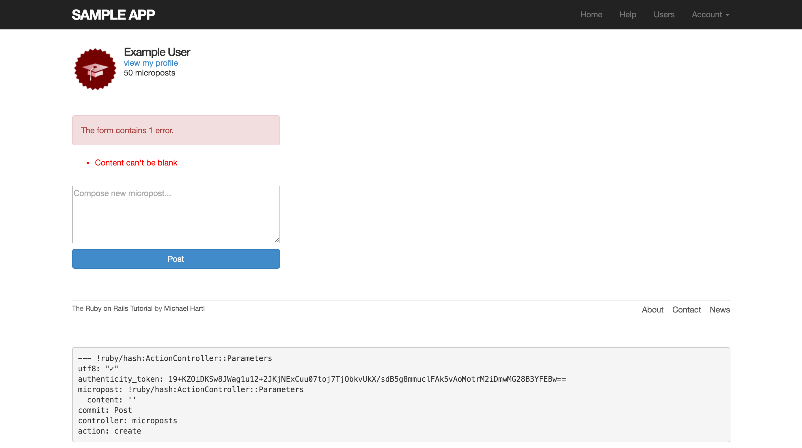 此外,本節的 HTML 都應該能正確顯示了,以下是建立 micropost 的表單: