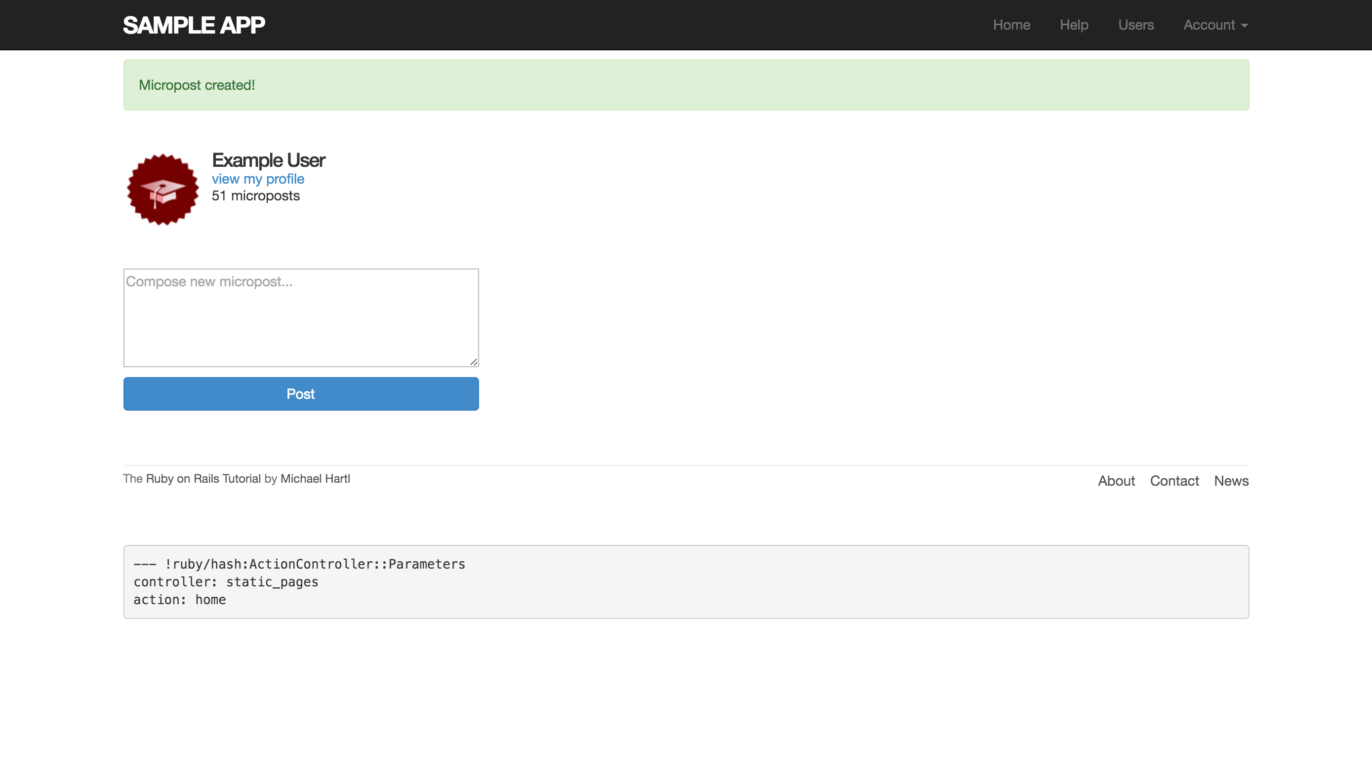 這是成功建立的訊息,原本「50 microposts」更新為「51 microposts」: