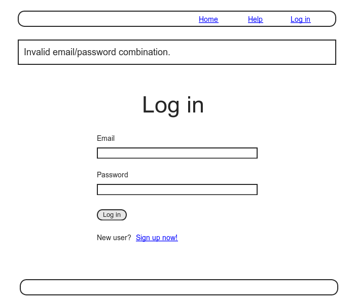 之前註冊失敗的訊息,我們透過 error-messages partial 來顯示錯誤訊息,而這些訊息是由 Active Record 自動產生。但如果是 session 的錯誤訊息就無法自動產生,因為它不是 Active Record 的物件,所以我們要透過 flash 來建立錯誤訊息。