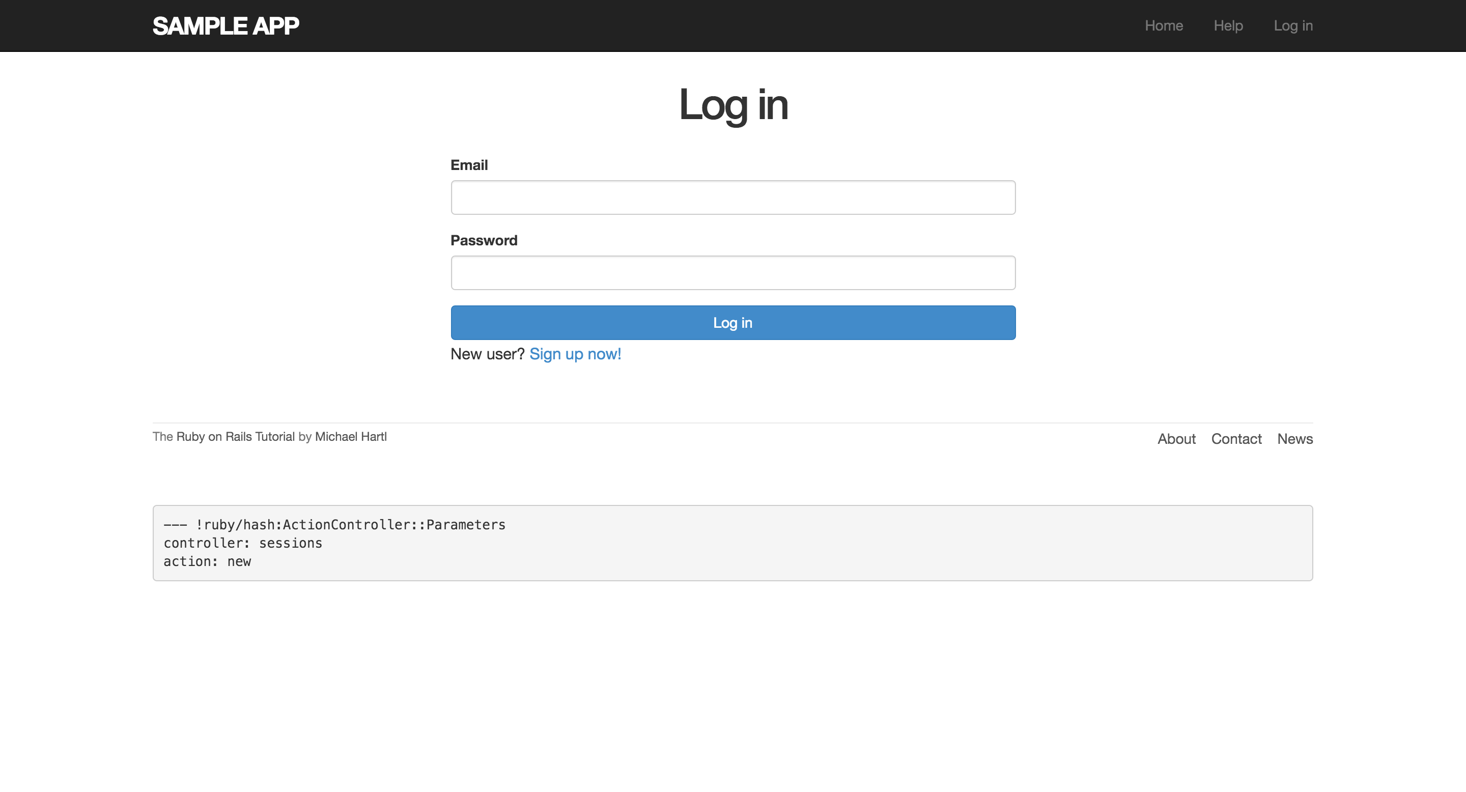 當送出資料時,就會產生一個 params hash,裡面會包含 params[:session][:email]、params[:session][:password]。